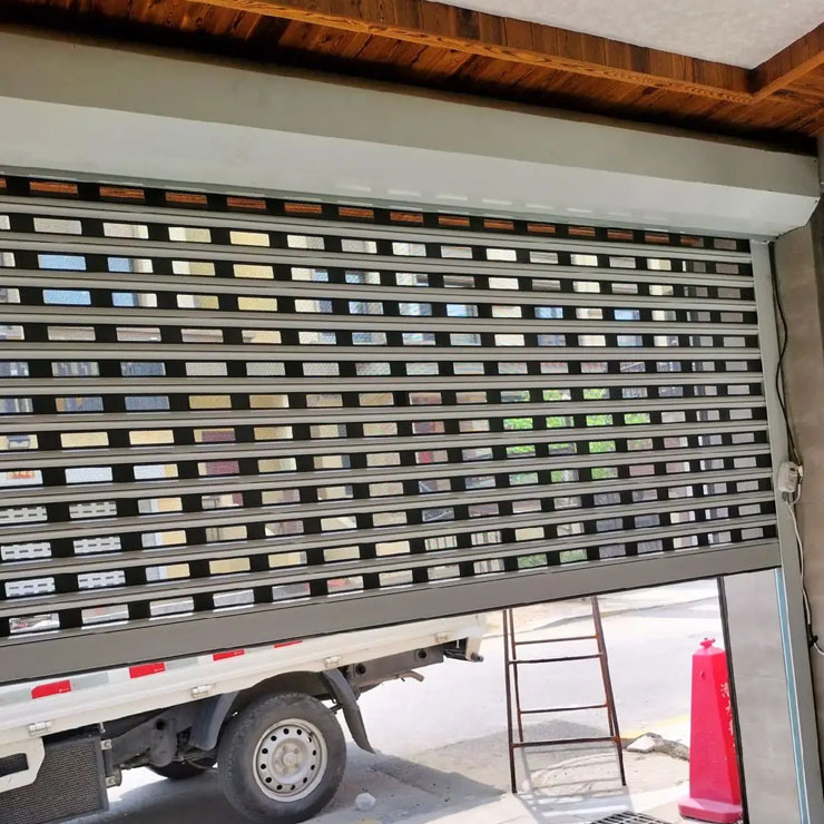 2. Drzwi stalowe odporne na wiatrowe są wykonane od stali o grubości 0,6 do 1,2 mm. Liny mają wysokość 82 mm lub 120 mm, można go ocynkować oryginalny kolor lub pomalowany na różne kolory. Na listetach można wykonać małe okrągłe otwory. Drzwi są zwykle ręcznym podnoszeniem, bez silnika. W przypadku drzwi dużych rozmiarów, z ręcznym systemem wciągania łańcucha.