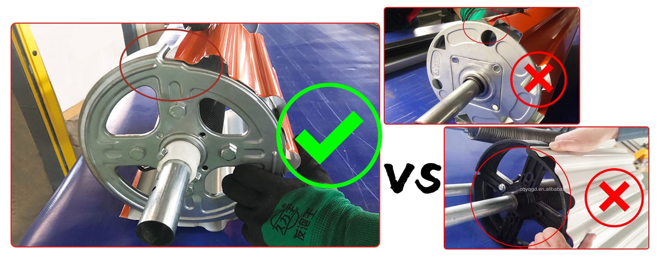 Zasłona zamocowana na bębnie. Po zamocowaniu kurtyny na bębnie może ona wykonać idealną rundę, a kurtyna drzwi płynnie przesuwa się w górę i w dół